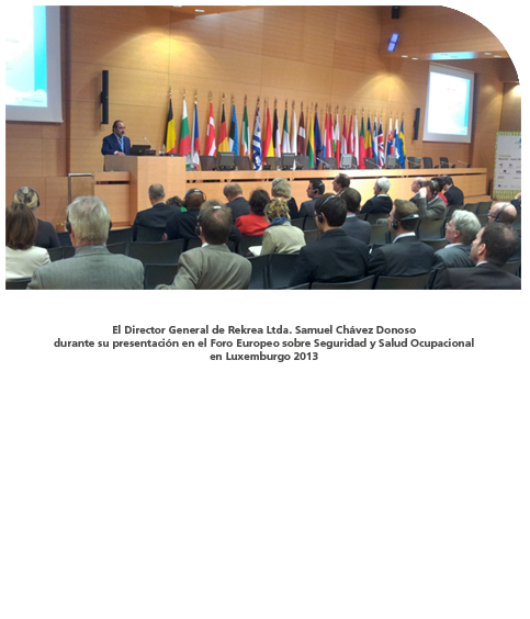 Invitado por la Mutua Alemana BG ETEM y la Asociación Internacional de Seguridad Social AIIS, el Director General de Rekrea Ltda. Samuel Chávez Donoso participó como conferencista en el Foro Europeo sobre Gestión de la Seguridad y la Salud Ocupacional en el Siglo 21, llevado a cabo en Luxemburgo durante los días 24 y 25 de abril 2013, al que concurrieron destacados especialistas de 15 países europeos.