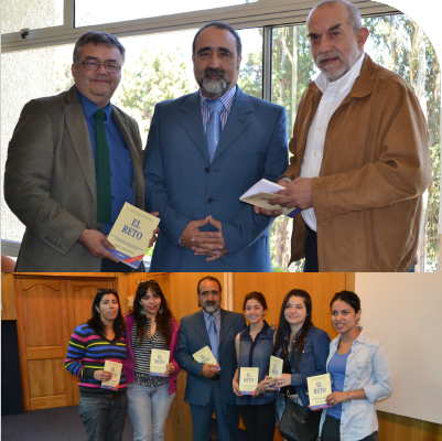 Samuel Chávez Donoso, Director General de Rekrea Ltda. junto al Director de la Sede “El Olivar” de la Universidad Técnica Federico Santa María y al Director de la carrera Prevención de Riesgos Claudio Acuña, en el acto de entrega de el libro “El Reto” a cada uno de los alumnos de ingeniería en prevención de riesgos que egresaron en 2014. Lo anterior, como parte del plan de Rekrea consistente en regalar este especial libro a cada uno de los egresados 2014 de la carrera de ingeniería en prevención de riegos de todas las universidades e institutos que imparten esta carrera en nivel de ingeniería.